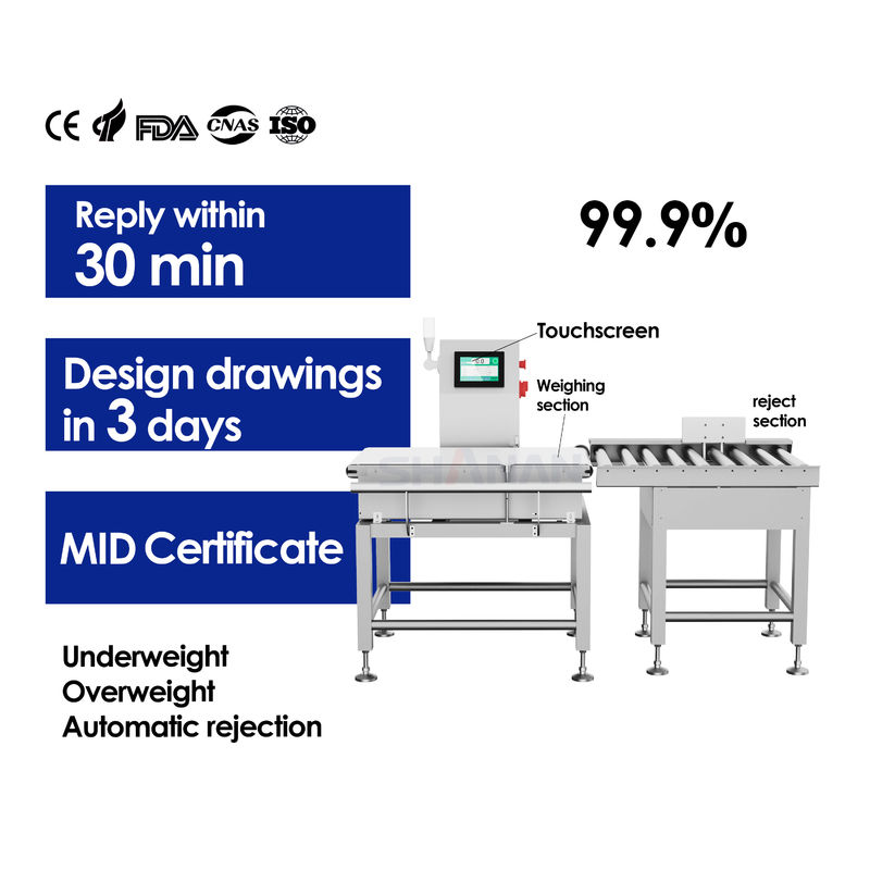 مع أدائها الموثوق بها، الميزات المتقدمة، والتطبيقات متعددة الاستخدامات، الوزن التحقق التلقائي من شانان هو الحل المثالي لجميع احتياجات الوزن.اتصل بنا اليوم لمعرفة المزيد عن منتجاتنا وكيف يمكننا المساعدة في تحسين عملية الإنتاج الخاصة بك.