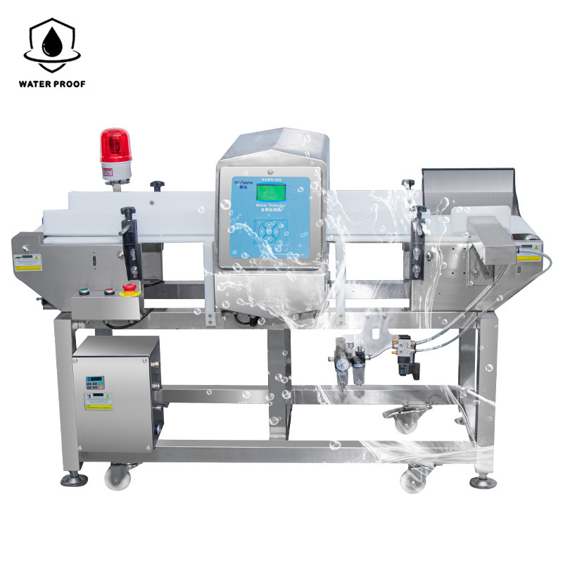 Metal detector can be used in food, pharmaceutical, chemical,textile and garment, toy industry and so on, which is authorized by HACCP(food industry), GMP(pharmaceutical industry), and it can be applied for cookies, sauces, dumpling, hum, soup, candy, meat, frozen food, salted food, fast food, bakery etc, and other industries that have special requirements on detection sensitivity, anti-interference, waterproof. Besides, it can detect broken needles, metals mixed with products.